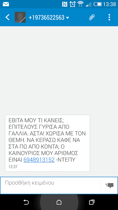 Μετά το τηλέφωνο απάτη 6948913163 τώρα μας τα πρήζουν και από το 6948913152 με τη δήθεν Ντέπυ που γύρισε από τη Γαλλία, την Εβίτα κι άλλα καραγκιοζλίκια.